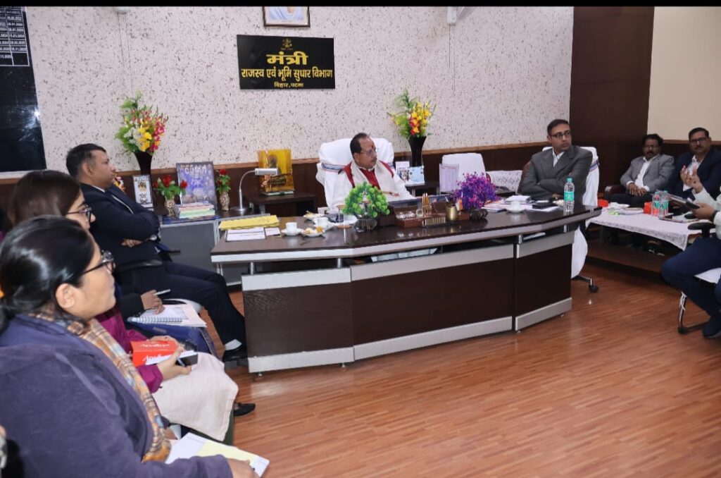 पटना : राजस्व एवं भूमि सुधार विभाग द्वारा संचालित राजस्व महाअभियान की मंगलवार को उपमुख्यमंत्री सह राजस्व एवं भूमि सुधार मंत्री विजय कुमार सिन्हा ने अपने कार्यालय कक्ष में समीक्षा की। बैठक में विभाग के प्रधान सचिव सीके अनिल सहित सभी वरीय अधिकारी उपस्थित थे। उपमुख्यमंत्री ने बताया कि राजस्व महाअभियान का मुख्य उद्देश्य राज्य की जमाबंदी को अपडेट करना है। इस अभियान के दौरान उत्तराधिकार नामांतरण, बंटवारा नामांतरण, डिजिटाइज्ड जमाबंदी में त्रुटि सुधार एवं छूटी हुई जमाबंदी को ऑनलाइन करने के लिए आवेदन लिए गए थे। इस दौरान सभी रैयतों तक उनकी जमाबंदी की प्रति घर–घर पहुंचाई गई थी। अभियान के दौरान पंचायत स्तर पर लगाए गए शिविरों में 46 लाख आवेदन प्राप्त हुए, जिनमें से 15 लाख आवेदनों की अपलोडिंग अब तक पूरी की जा चुकी है। शेष आवेदनों को 31 दिसंबर तक अपलोड करने का कार्य तेजी से जारी है।
