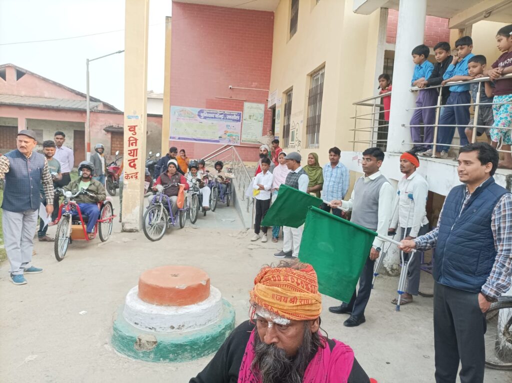 रक्सौल : विश्व विकलांगता दिवस के अवसर पर प्रखंड परिसर स्थित बुनियाद केंद्र में 11 दिव्यांगों के बीच बैट्री द्वारा संचालित ट्राई साइकिल का वितरण किया गया. एसडीओ मनीष कुमार, बीडीओ जयप्रकाश के द्वारा संयुक्त रूप से हरी झंडी दिखाकर ट्राई साइकिल को रवाना किया गया. केंद्र प्रबंधक जिष्णु नाथ तिवारी ने बताया कि 17 दिव्यांगों का रजिस्ट्रेशन बैट्री संचालित ट्राई साइकिल के लिए किया गया था, जिसमें उपस्थित लोगों को ट्राई साइकिल दिया गया. शेष 6 लोगों की ट्राई साइकिल बुनियाद केंद्र पर रखी गई है, जिनके आने पर उनको साइकिल दी जायेगी. इसके बाद दिव्यांगों के बीच एक बैठक जिष्णूनाथ तिवारी की अध्यक्षता में की गई. बैठक में सामाजिक प्रगति को आगे बढ़ाने के लिए परिचर्चा का आयोजन किया गया. बैठक को संबोधित करते हुए श्री तिवारी ने कहा कि पहले बैट्री संचालित ट्राई साइकिल 60 प्रतिशत से अधिक दिव्यांग लोगों को दिया जाता था, लेकिन अब सरकार का नियम बन गया है कि 40 प्रतिशत दिव्यांग लोगों को भी ट्राई साइकिल दी जाएगी. वहीं विकलांगता दिवस के अवसर पर दिव्यांग बच्चों के बीच प्रतियोगिता का आयोजन किया गया. जिसमें नींबू प्रतियोगित, चित्रकला प्रतियोगिता आदि का आयोजन किया गया. इसमें सफल बच्चों को सम्मानित किया गया. मौके पर संजय कुमार, मिथलेश कुमार, मंजीत कुमार, अशोक कुमार, राम कुमार, सोनी कुमारी, मौसमी कुमारी, अनुपमा कुमारी, लक्ष्मण कुमार, आशीष कुमार सहित अन्य मौजूद थे.